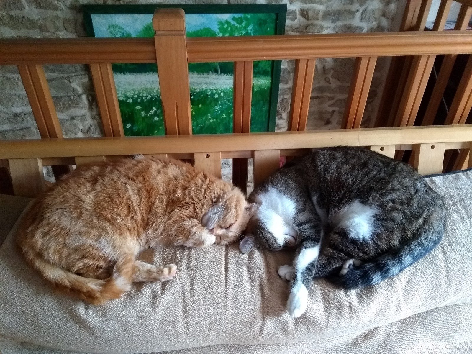 Elric and Freya are our latest two abandoned cats that we have adopted and have lived with us for over two years now. Ginger and Mrs Cat are French cats which adopted us! They love the large garden and woodland, and spend hours sunbathing on the patio and the decking.