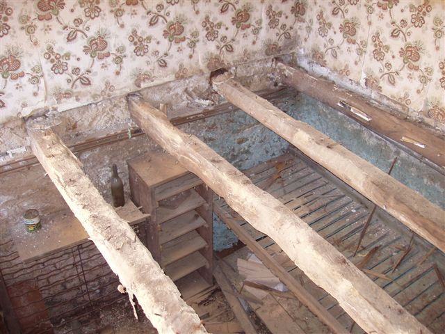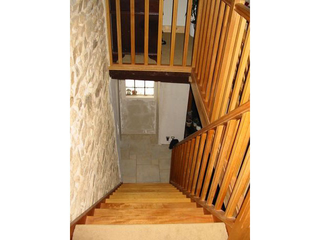 It was an empty shell when we bought it, with only a very grotty toilet and shower room. Luckily the roof had recently been renewed but there was lots of work to do inside and out. Three wooden floors needed replacing, along with some joists to hold them up. Two new staircases were needed, one to go to the first floor and one to go down to the cellar. We needed to put a new kitchen and a new bathroom in and tile the floors. We changed the entrance to the cellar by knocking a wall down to fill in the existing steps and putting the new cellar staircase into the adjoining room.