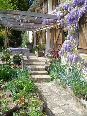 The garden was a wilderness which took a while to tame. Over the years we have removed around 20 pine and spruce trees which made the bottom of the garden very dark and dreary, where little else grew. We added a vegetable garden, loads of flower beds and an above ground swimming pool with a deck area. The most recent addition has been a greenhouse which Ian built entirely from reclaimed material – donated old windows, an old door and some leftover pine flooring. It is brilliant, and Debra who is a passionate gardener fills it all year round!